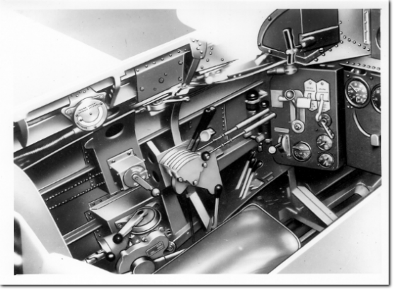 35 - Clock 36 - Bomb lock and drop indicator 37 - 12.7 and 7.7 guns ammunition electrical counter 38 - 12.7 and 7.7 guns lock 39 - Bombs drop 40 - Big control unit 41 - Small control unit 42 - Internal lights 43 - Signalling gun 44 - Cartridges box for gun 45 - Oxygen system, model Draeger 46 - Oxygen bottles 47 - Oxygen outlet pressure gauge 48 - Oxygen tank pressure gauge 49 - Vibration starting switch